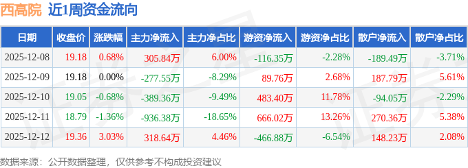 资金流向数据方面,本周西高院主力资金合计净流出978.8万元,游资资金合计净流入655.95万元,散户资金合计净流入322.85万元。本周资金流向一览见下表: