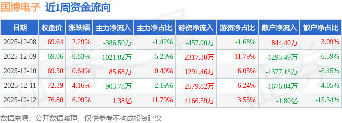 资金流向数据方面,本周国博电子主力资金合计净流入1.16亿元,游资资金合计净流入9897.27万元,散户资金合计净流出2.15亿元。本周资金流向一览见下表: