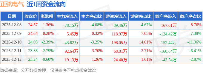 资金流向数据方面,本周正弦电气主力资金合计净流出4.55万元,游资资金合计净流入317.98万元,散户资金合计净流出313.42万元。本周资金流向一览见下表: