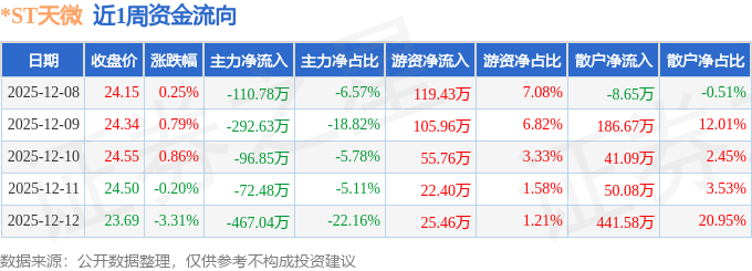资金流向数据方面,本周*ST天微主力资金合计净流出1039.78万元,游资资金合计净流入329.01万元,散户资金合计净流入710.77万元。本周资金流向一览见下表: