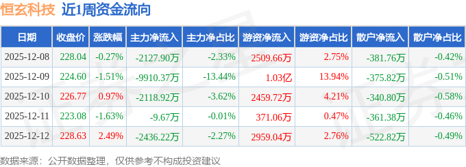 资金流向数据方面,本周恒玄科技主力资金合计净流出1.66亿元,游资资金合计净流入1.86亿元,散户资金合计净流出1982.59万元。本周资金流向一览见下表: