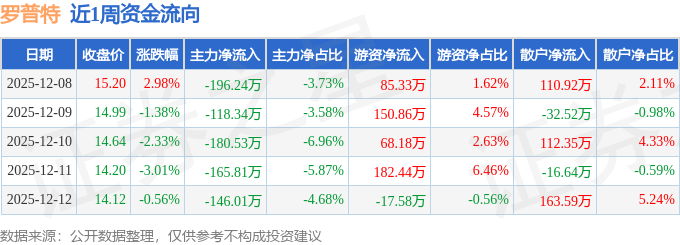 资金流向数据方面,本周罗普特主力资金合计净流出806.93万元,游资资金合计净流入469.24万元,散户资金合计净流入337.69万元。本周资金流向一览见下表: