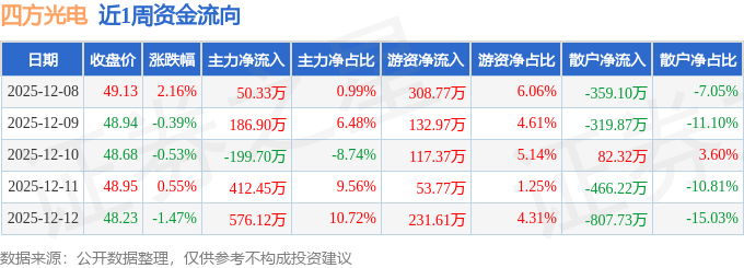 资金流向数据方面,本周四方光电主力资金合计净流入1026.1万元,游资资金合计净流入844.5万元,散户资金合计净流出1870.6万元。本周资金流向一览见下表: