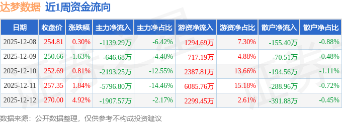 资金流向数据方面,本周达梦数据主力资金合计净流出1.17亿元,游资资金合计净流入1.28亿元,散户资金合计净流出1101.32万元。本周资金流向一览见下表: