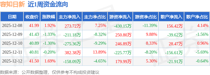 资金流向数据方面,本周容知日新主力资金合计净流入11.48万元,游资资金合计净流入21.77万元,散户资金合计净流出33.25万元。本周资金流向一览见下表: