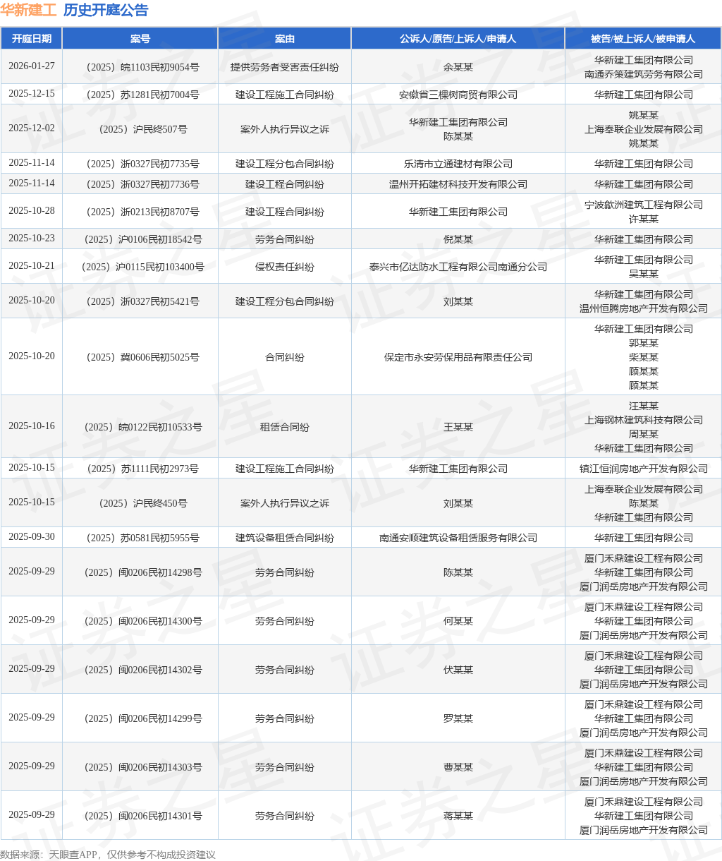证券之星消息,根据天眼查APP显示,近日公布了一则华新建工集团有限公司作为被告/被上诉人的开庭公告,详细内容如下: