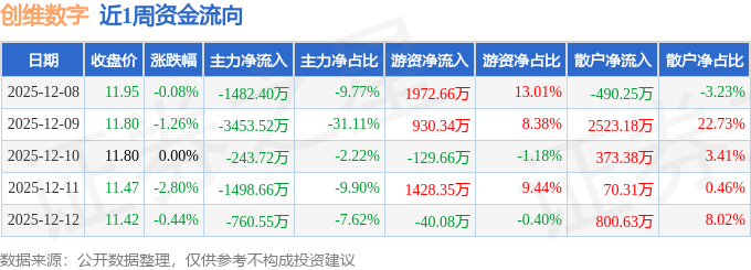 资金流向数据方面,本周创维数字主力资金合计净流出7438.85万元,游资资金合计净流入4161.61万元,散户资金合计净流入3277.24万元。本周资金流向一览见下表: