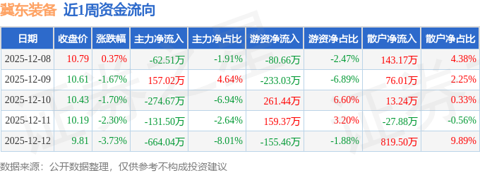 资金流向数据方面,本周冀东装备主力资金合计净流出975.71万元,游资资金合计净流出48.34万元,散户资金合计净流入1024.04万元。本周资金流向一览见下表: