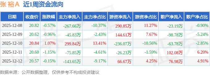 资金流向数据方面,本周张 裕A主力资金合计净流出233.15万元,游资资金合计净流入239.83万元,散户资金合计净流出6.68万元。本周资金流向一览见下表:
