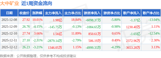 沪深股通持股方面,截止2025年12月12日收盘,大中矿业深股通持股数为664.09万股,占流通股比为54.0%。