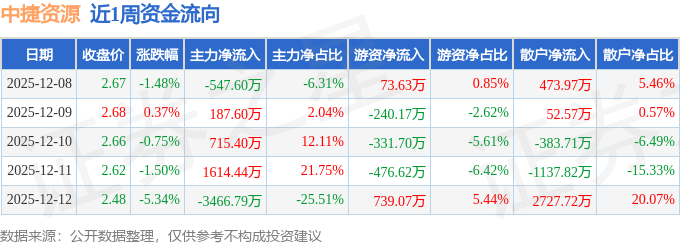 资金流向数据方面,本周中捷资源主力资金合计净流出1496.95万元,游资资金合计净流出235.79万元,散户资金合计净流入1732.74万元。本周资金流向一览见下表: