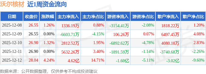 资金流向数据方面,本周沃尔核材主力资金合计净流入4.94亿元,游资资金合计净流出2.79亿元,散户资金合计净流出2.15亿元。本周资金流向一览见下表: