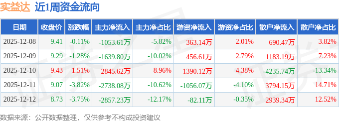 资金流向数据方面,本周实益达主力资金合计净流出5443.1万元,游资资金合计净流入1071.69万元,散户资金合计净流入4371.41万元。本周资金流向一览见下表: