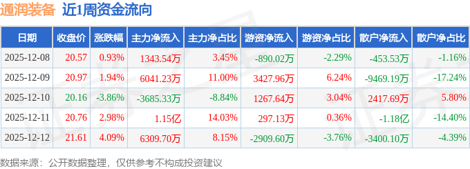 资金流向数据方面,本周通润装备主力资金合计净流入2.15亿元,游资资金合计净流入1193.11万元,散户资金合计净流出2.27亿元。本周资金流向一览见下表: