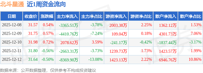 资金流向数据方面,本周北斗星通主力资金合计净流出1.67亿元,游资资金合计净流入4534.11万元,散户资金合计净流入1.22亿元。本周资金流向一览见下表: