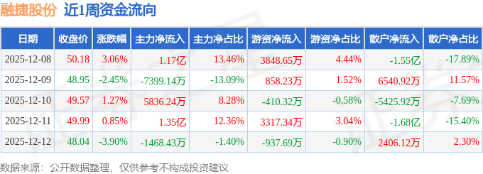 资金流向数据方面,本周融捷股份主力资金合计净流入2.21亿元,游资资金合计净流入6676.21万元,散户资金合计净流出2.88亿元。本周资金流向一览见下表: