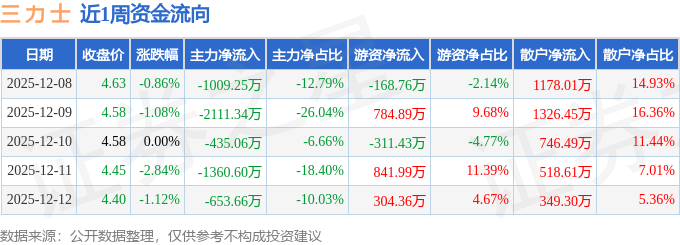 资金流向数据方面,本周三 力 士主力资金合计净流出5569.9万元,游资资金合计净流入1451.04万元,散户资金合计净流入4118.87万元。本周资金流向一览见下表: