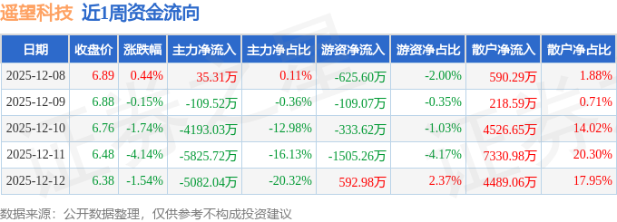 资金流向数据方面,本周遥望科技主力资金合计净流出1.52亿元,游资资金合计净流出1980.57万元,散户资金合计净流入1.72亿元。本周资金流向一览见下表: