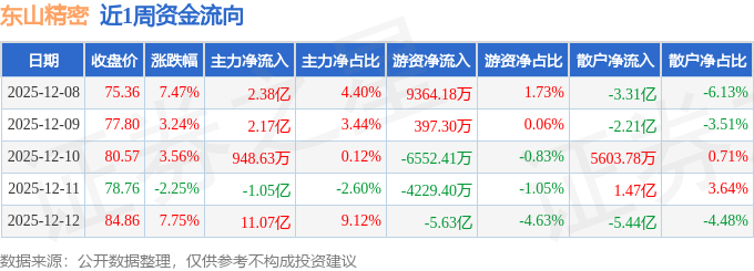 资金流向数据方面,本周东山精密主力资金合计净流入14.67亿元,游资资金合计净流出5.73亿元,散户资金合计净流出8.94亿元。本周资金流向一览见下表: