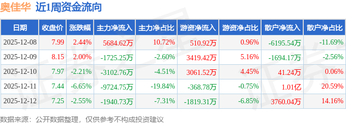 资金流向数据方面,本周奥佳华主力资金合计净流出1.08亿元,游资资金合计净流入4803.77万元,散户资金合计净流入6005.09万元。本周资金流向一览见下表: