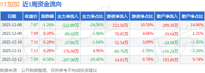 资金流向数据方面,本周ST加加主力资金合计净流出671.35万元,游资资金合计净流入299.35万元,散户资金合计净流入372.01万元。本周资金流向一览见下表: