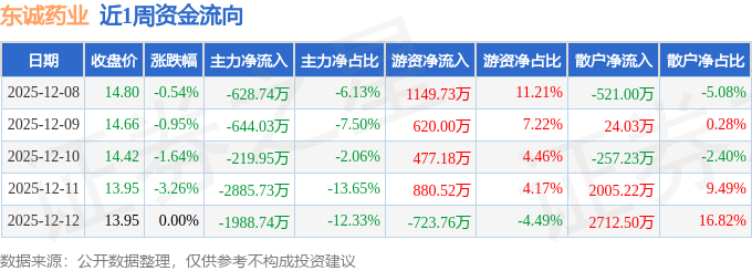 资金流向数据方面,本周东诚药业主力资金合计净流出6367.19万元,游资资金合计净流入2403.66万元,散户资金合计净流入3963.52万元。本周资金流向一览见下表: