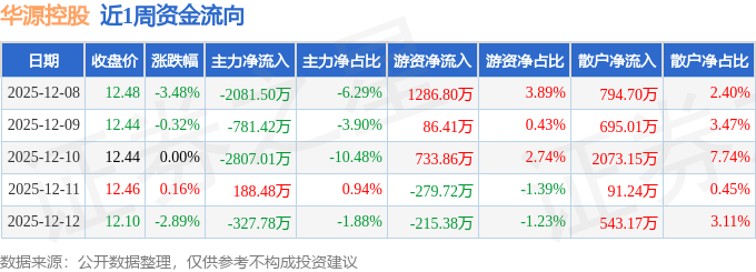 资金流向数据方面,本周华源控股主力资金合计净流出5809.24万元,游资资金合计净流入1611.97万元,散户资金合计净流入4197.26万元。本周资金流向一览见下表: