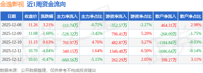 资金流向数据方面,本周金逸影视主力资金合计净流出258.49万元,游资资金合计净流入2535.48万元,散户资金合计净流出2276.99万元。本周资金流向一览见下表:
