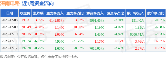 资金流向数据方面,本周深南电路主力资金合计净流出8222.42万元,游资资金合计净流出2.75亿元,散户资金合计净流入3.57亿元。本周资金流向一览见下表:
