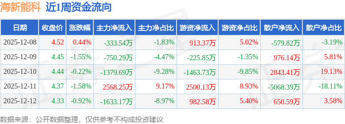 资金流向数据方面,本周海新能科主力资金合计净流出1528.44万元,游资资金合计净流入2706.51万元,散户资金合计净流出1178.07万元。本周资金流向一览见下表: