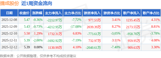 资金流向数据方面,本周捷成股份主力资金合计净流出5255.54万元,游资资金合计净流入935.66万元,散户资金合计净流入4319.88万元。本周资金流向一览见下表: