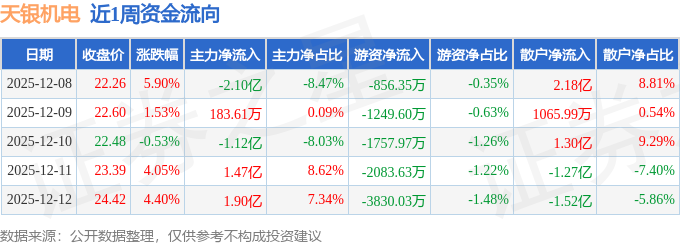 资金流向数据方面,本周天银机电主力资金合计净流入1739.66万元,游资资金合计净流出9777.57万元,散户资金合计净流入8037.92万元。本周资金流向一览见下表: