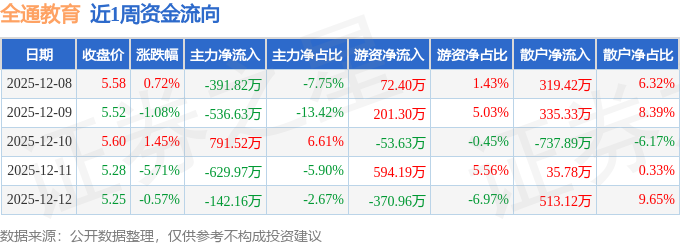 资金流向数据方面,本周全通教育主力资金合计净流出909.05万元,游资资金合计净流入443.3万元,散户资金合计净流入465.75万元。本周资金流向一览见下表: