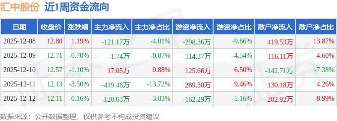 资金流向数据方面,本周汇中股份主力资金合计净流出645.97万元,游资资金合计净流出160.06万元,散户资金合计净流入806.03万元。本周资金流向一览见下表: