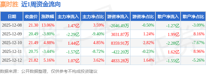 资金流向数据方面,本周赢时胜主力资金合计净流入1134.97万元,游资资金合计净流入1.38亿元,散户资金合计净流出1.49亿元。本周资金流向一览见下表: