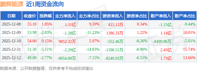 沪深股通持股方面,截止2025年12月12日收盘,鹏辉能源深股通持股数为408.16万股,占流通股比为101.0%。