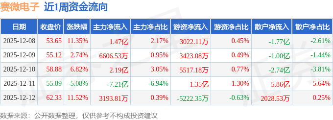 资金流向数据方面,本周赛微电子主力资金合计净流出2.57亿元,游资资金合计净流入2.02亿元,散户资金合计净流入5488.81万元。本周资金流向一览见下表: