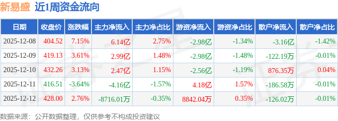 沪深股通持股方面,截止2025年12月12日收盘,新易盛深股通持股数为2992.97万股,占流通股比为478.0%。