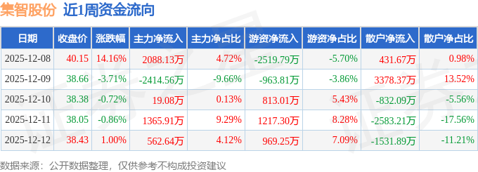 资金流向数据方面,本周集智股份主力资金合计净流入1621.2万元,游资资金合计净流出484.05万元,散户资金合计净流出1137.15万元。本周资金流向一览见下表: