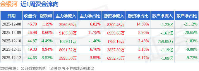 沪深股通持股方面,截止2025年12月12日收盘,金银河深股通持股数为39.29万股,占流通股比为36.0%。