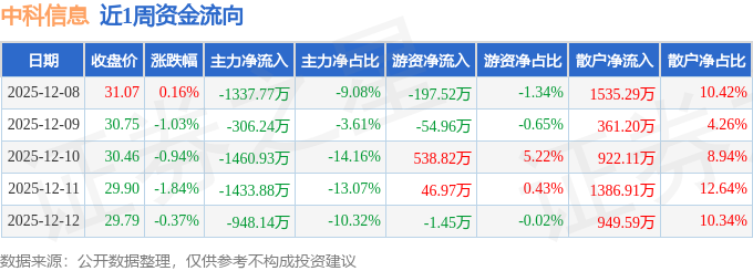 资金流向数据方面,本周中科信息主力资金合计净流出5486.96万元,游资资金合计净流入331.85万元,散户资金合计净流入5155.1万元。本周资金流向一览见下表: