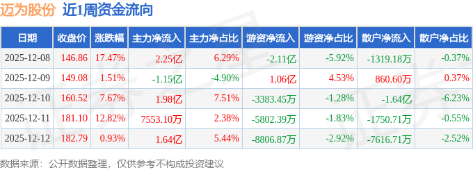 沪深股通持股方面,截止2025年12月12日收盘,迈为股份深股通持股数为1182.03万股,占流通股比为612.0%。