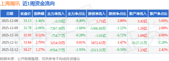 资金流向数据方面,本周上海瀚讯主力资金合计净流出6.58亿元,游资资金合计净流入4967.86万元,散户资金合计净流入6.09亿元。本周资金流向一览见下表: