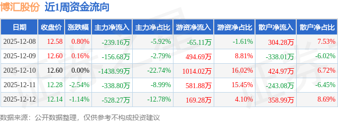 资金流向数据方面,本周博汇股份主力资金合计净流出2701.91万元,游资资金合计净流入2194.76万元,散户资金合计净流入507.14万元。本周资金流向一览见下表: