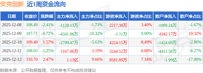 资金流向数据方面,本周安克创新主力资金合计净流入4188.89万元,游资资金合计净流入1.83亿元,散户资金合计净流出2.25亿元。本周资金流向一览见下表: