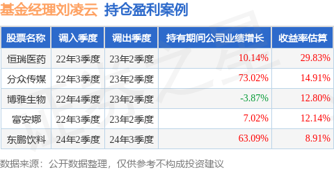 刘凌云管理的山证资管裕享增强债券发起式A基金在22年3季度买入分众传媒,在持有3个季度后在23年2季度卖出。持有期间的估算收益率为14.91%,持有期间分众传媒在2022年到2023年的年报归属净利润增幅达73.02%。