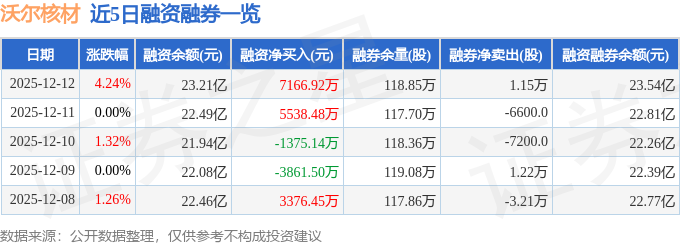证券之星消息,截至2025年12月12日收盘,沃尔核材(002130)报收于28.04元,上涨4.24%,换手率9.93%,成交量113.69万手,成交额31.41亿元。