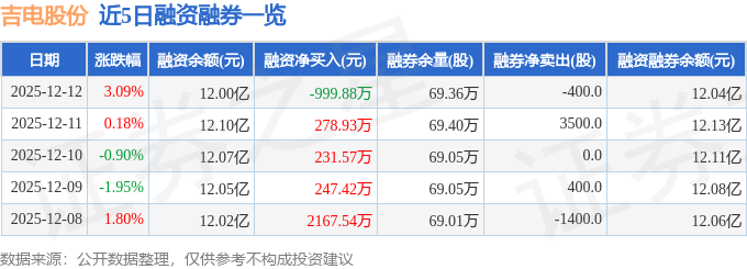 证券之星消息,截至2025年12月12日收盘,吉电股份(000875)报收于5.67元,上涨3.09%,换手率2.13%,成交量71.14万手,成交额4.01亿元。