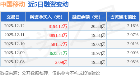 证券之星消息,12月12日,中国移动(600941)融资买入1.77亿元,融资偿还9534.08万元,融资净买入8194.12万元,融资余额20.33亿元,当日融资净买入排名第35,近3个交易日已连续净买入累计1.37亿元,近20个交易日中有11个交易日出现融资净买入。