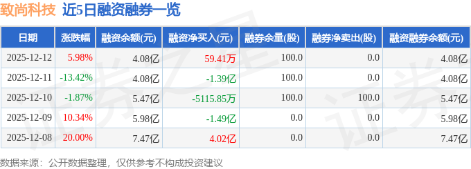 致尚科技融资融券信息显示,融资方面,当日融资买入2.27亿元,融资偿还2.26亿元,融资净买入59.41万元。融券方面,融券卖出0.0股,融券偿还0.0股,融券余量100.0股,融券余额1.1万元。融资融券余额4.08亿元。
